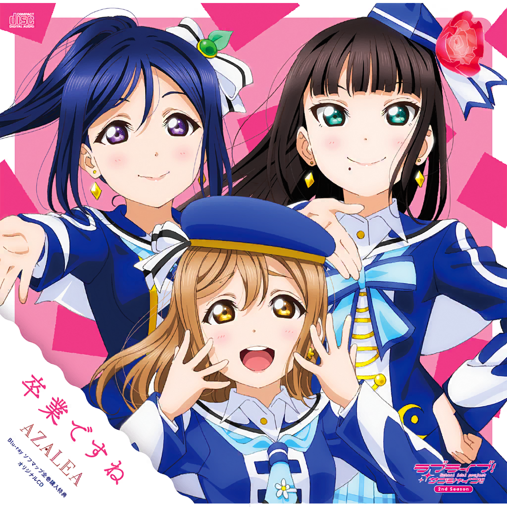 | Description | An AZALEA song about graduation. Kanan's heartfelt lyrics "We start here and then go right or left" and Dia's "Each of us choosing our own futures" highlights the theme of parting. Fans adore the moving choruses in live performances when the actors clasp their hands together and pump them back and forth. |