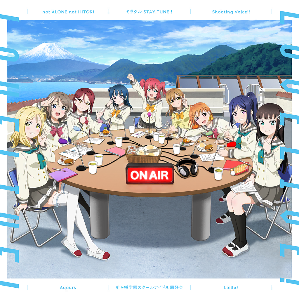 | Description | 一如「不是孤單一人」這句話,Aqours總是試圖鼓勵他人、分享元氣的心意完全體現於這首歌曲。封面的ON AIR標示與九名廣播主持人齊聚的畫面也令人印象深刻。 |